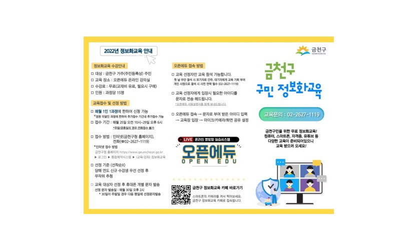 서울 금천구(구청장 유성훈)는 계층 간 정보격차를 없애고 구민의 디지털 역량을 강화하기 위해 2월 3일부터 12월까지 구민 대상 정보화 교육을 실시한다.구민 정보화 교육…