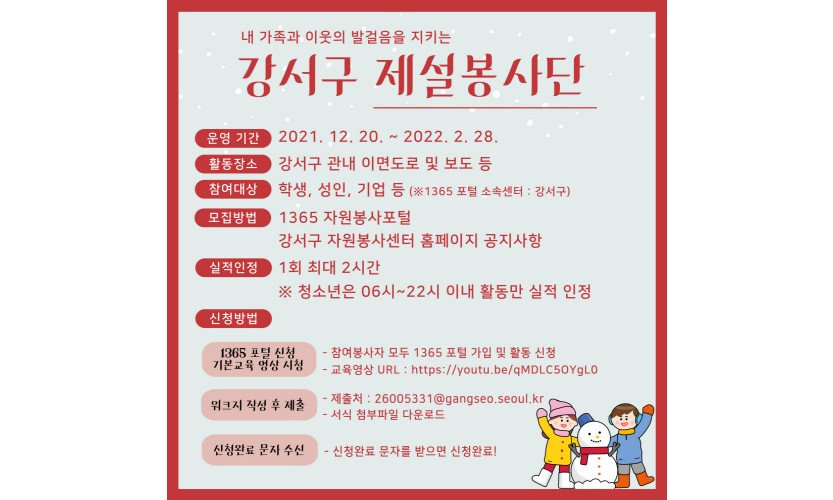 강서구, 2월 18일까지 주민 대상 제설 자원봉사단 참여자 모집