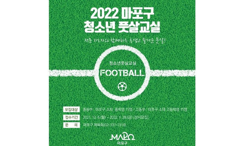 마포구, 2022 마포구 청소년 풋살교실 신규 선수 모집