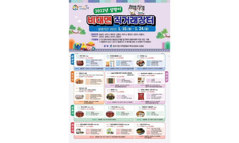 다가오는 설 명절, 더욱 안전하고 편리하게 장 보러 가자.서울 강서구(구청장 노현송)는 민족 대명절 설을 맞아 '비대면 직거래장터'를 오는 10일부터 24일까지 2주간 …