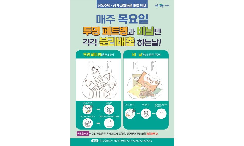 관악구, 투명페트병·비닐만 배출 요일제 확대 시행