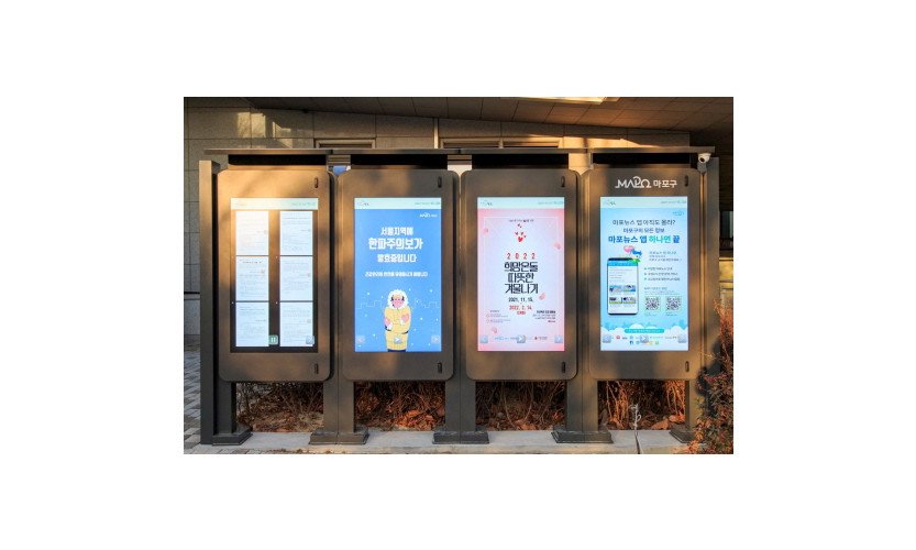 서울 마포구(구청장 유동균)가 신속하게 구정 소식을 전하고자 마포구청사 외부에 '디지털 홍보게시판'을 설치하고 시범운영에 들어갔다고 24일 밝혔다.55인치 4개 화면으로…