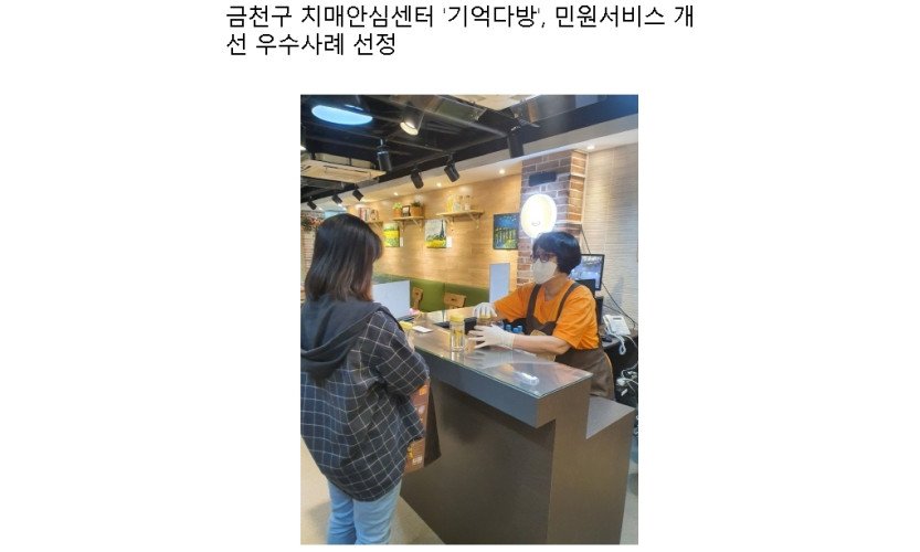 금천구 치매안심센터 '기억다방', 민원서비스 개선 우수사례 선정