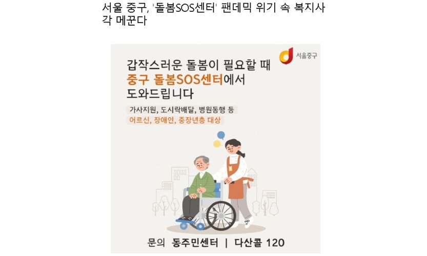 서울 중구, '돌봄SOS센터' 팬데믹 위기 속 복지사각 메꾼다