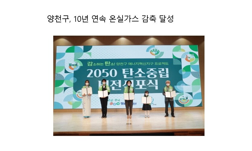 양천구, 10년 연속 온실가스 감축 달성