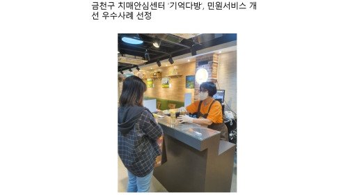 금천구 치매안심센터 '기억다방', 민원서비스 개선 우수사례 선정