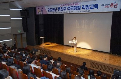 서울 용산구(구청장 박희영)가 지난 26일 용산아트홀 소극장 가람에서 소속 공무원과 용산구시설관리공단 직원을 대상으로 적극행정 직장교육을 실시했다.