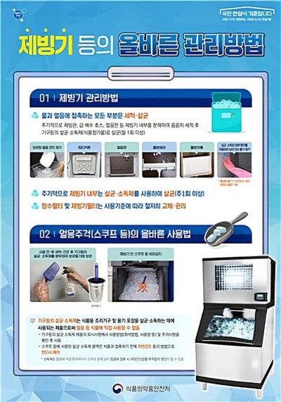 또한 구민으로 구성된 소비자식품위생감시원이 직접 현장을 방문해 제빙기 세척·소독 요령을 교육하고 위생 실태를 점검할 예정이다. 이어 하반기에는 교육 효과와 위생 관리 실태를 확인하기 위한 사후 모니터링도 실시해 위생관리가 지속적으로 이루어질 수 있도록 지원할 계획이다.
