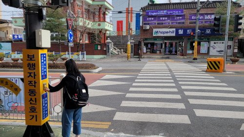 합천군 스마트 신호등, '이제 눌러서 건너자'