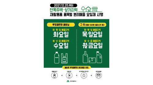 대구광역시, 단독주택 재활용품 분리배출 요일제 전면 시행