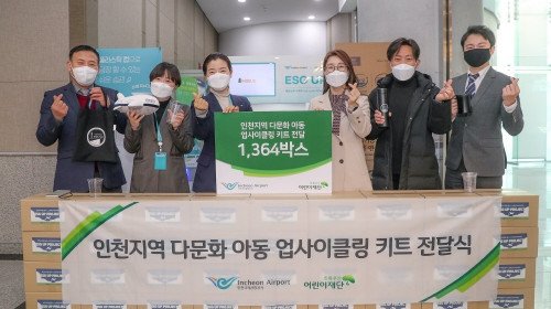 인천국제공항공사(사장 김경욱)는 공사 임직원의 참여로 모은 폐플라스틱을 업사이클링(Up-Cycling) 해 만든 친환경 키트 1,364세트를 지역사회 다문화 가정 아동들…