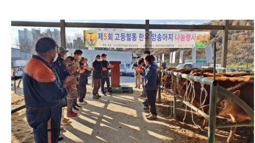 경남 함양군은 17일 오전 함양가축시장에서 소규모 한우 사육농가 우량 한우 개량을 위한 '고등혈통 우량 한우 나눔 행사'를 실시했다.지난 2017년 처음 시작된 나눔 행사는 우량 …