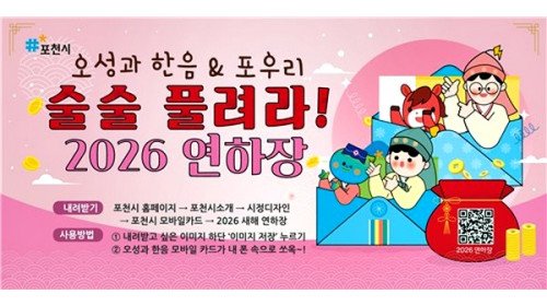 포천시는 2026년 병오년(丙午年) 새해를 맞아 시민들이 감사와 따뜻한 마음을 손쉽게 전할 수 있도록 '2026 모바일 연하장'을 무료로 배포한다고 밝혔다.이번에 제작된…