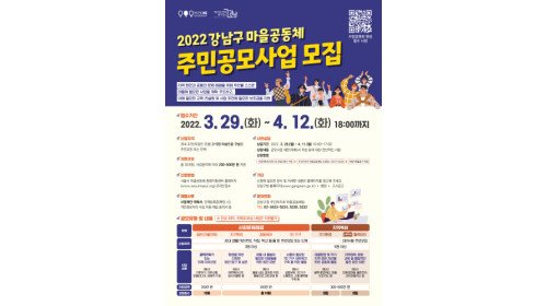 강남구, 마을공동체 주민공모사업 최대 500만원 지원