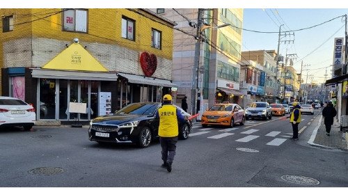마포구, 망원시장 주차장 앞 교통 체증 교통정리 자원봉사
