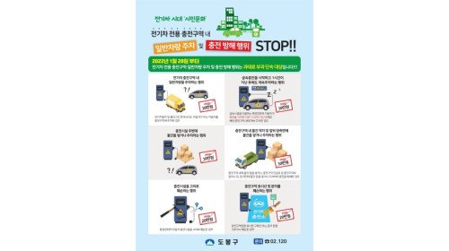 도봉구, '전기차 충전구역은 전기차를 위해 비워두세요'