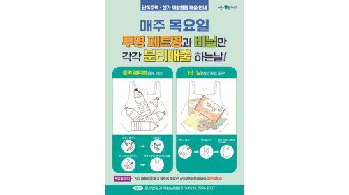 관악구, 투명페트병·비닐만 배출 요일제 확대 시행