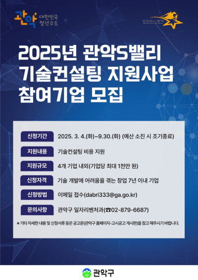 관악구, 벤처 창업기업 '맞춤형 기술컨설팅' 지원