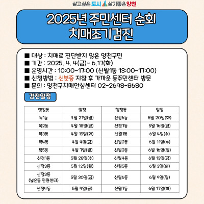 양천구 "조기검진이 확실한 예방"…동 주민센터서 무료 '치매검사'