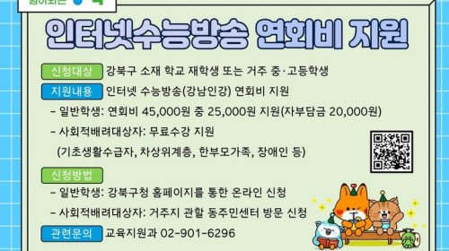 강북구, 온라인 수능 강좌 수강료 지원…예비 중학생도 참여 가능