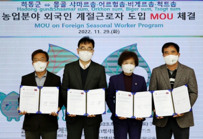 하동군, 몽골 지방정부와 계절근로자 업무협약 체결