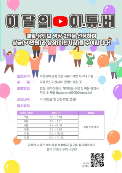 이천시, '이달의 이천 유튜버' 영상 모집·선정