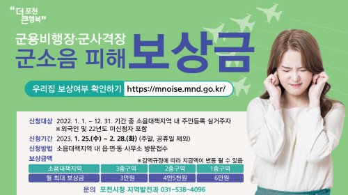 포천시, 내달 28일까지 군소음 피해 보상금 신청 접수