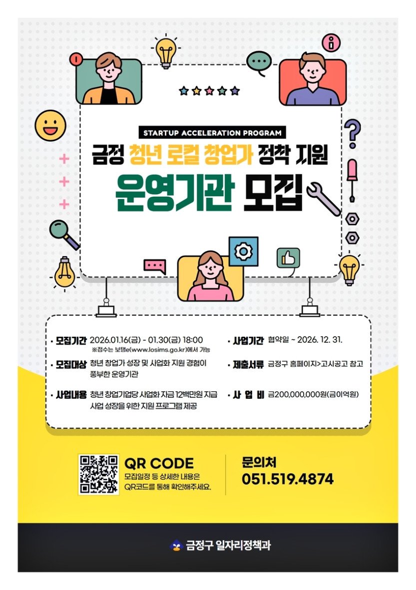 부산 금정구(구청장 윤일현)는 지역에 정착할 수 있는 청년 로컬 창업가를 육성하기 위해 '금정 청년 로컬 창업가 정착 지원' 사업을 추진하고, 이를 운영할 운영기관(보조…