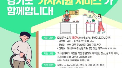 경기도, 맞벌이·다자녀 가정 등에 '가사지원서비스' 시작