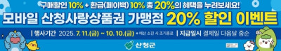 산청군 "모바일 산청사랑상품권 사용하면 최대 20% 할인"