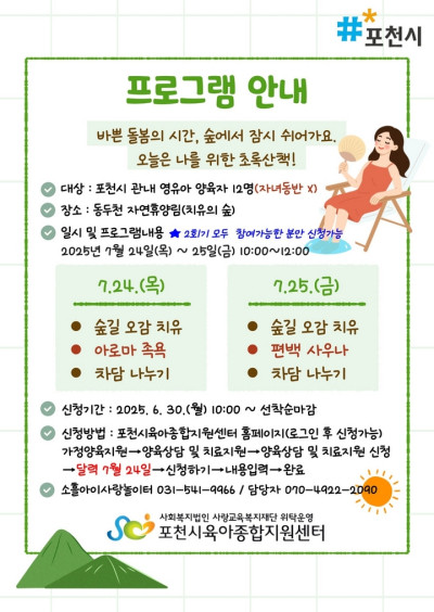 "숲에서 쉼표를 찍다" 포천시, 영유아 양육자 대상 힐링 프로그램 운영