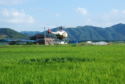"벼농사에 무인헬기" 합천군, 스마트 병해충 방제 시작