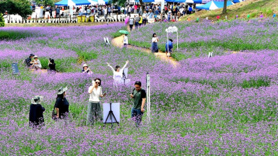 보랏빛 버베나 물든 장성군 동화면 램프공원, 야경 명소로