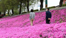 정읍천 둔치, 보라색 빛 꽃잔디 물결로 가득