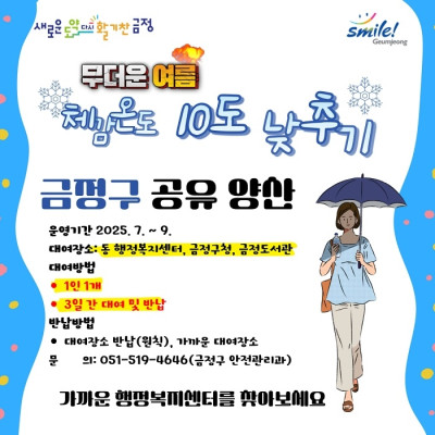 금정구, 폭염 피해 저감 '금정구 공유양산' 운영