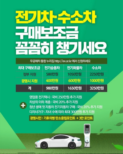 '친환경 광명시' 전기차 구매 지원 박차…하반기 210대 구매 지원