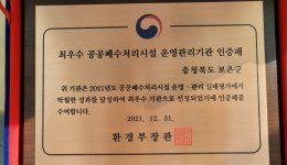 보은군, 공공폐수처리시설 운영·관리실태 평가 '최우수'