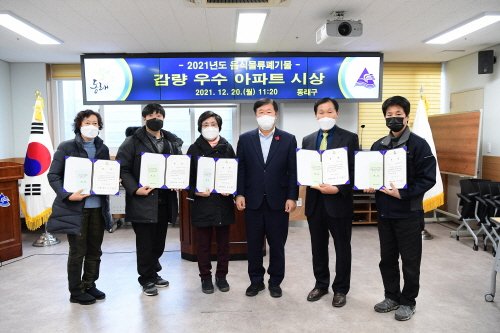 부산 동래구(구청장 김우룡)는 지난 20일 '2021년도 음식물류 폐기물 감량 우수아파트'를 선정하고 시상식을 개최했다고 밝혔다.