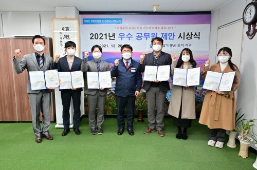 부산 서구(구청장 공한수)는 지난 20일에 2021년 공무원 우수제안자 6명에 대해 상장과 시상금을 수여했다.