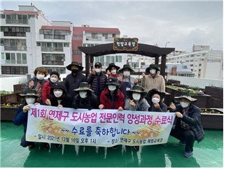 부산 연제구(구청장 이성문)는 지난 16일 연제구 도시농업 체험교육장에서 '2021년 도시농업 전문인력 양성교육' 수료식을 개최했다.