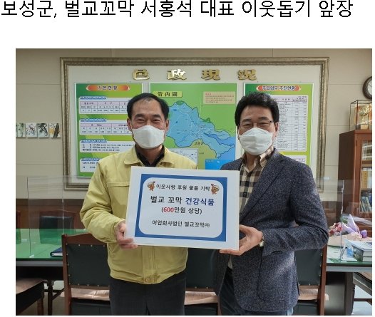 벌교읍행정복지센터는 전남사회복지공동모금회를 통해 관내 복지시설 및 저소득계층 이웃들에게 전달할 계획이다.