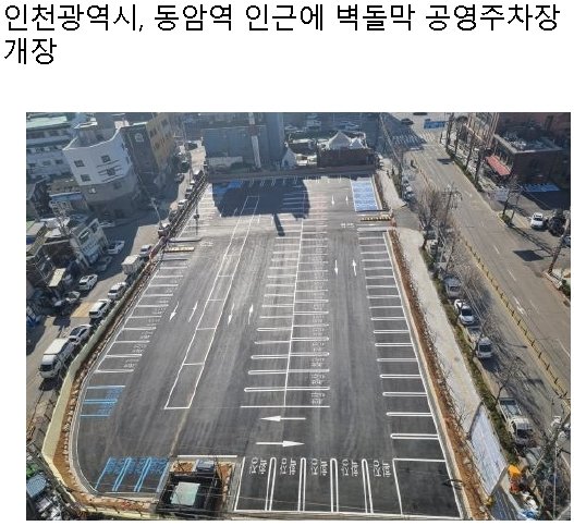 인천광역시, 동암역 인근에 벽돌막 공영주차장 개장