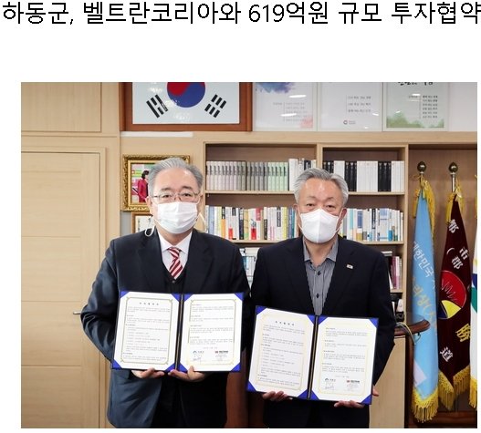 하동군, 벨트란코리아와 619억원 규모 투자협약