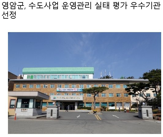전남 영암군은 환경부에서 실시한 2021년 수도사업 운영관리 실태 평가에서 우수기관으로 선정돼 인증서와 함께 포상금 500만 원을 받았다고 밝혔다.