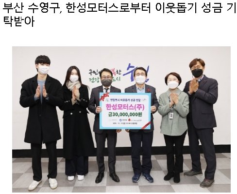 부산 수영구, 한성모터스로부터 이웃돕기 성금 기탁받아