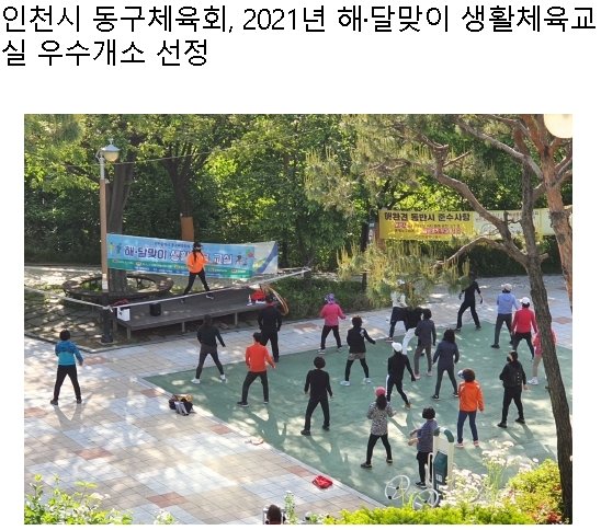 인천시 동구체육회, 2021년 해·달맞이 생활체육교실 우수개소 선정
