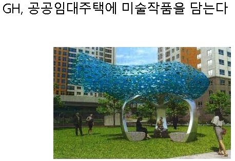 이러한 불균형을 해소하기 위해 GH는 '안양관양고 공공주택사업' 지구 내의 공공임대주택에 미술작품 설치 시범사업을 진행할 계획이다.
