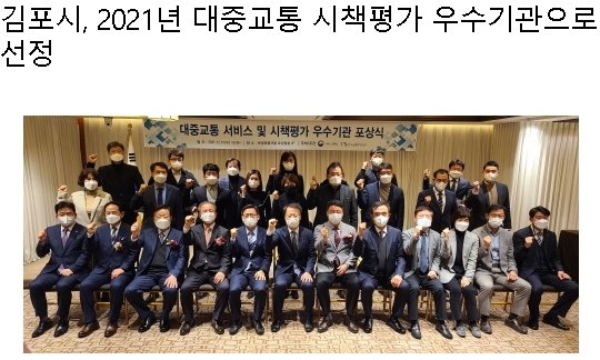 김포시, 2021년 대중교통 시책평가 우수기관으로 선정