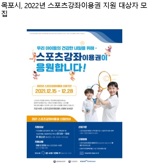 목포시, 2022년 스포츠강좌이용권 지원 대상자 모집