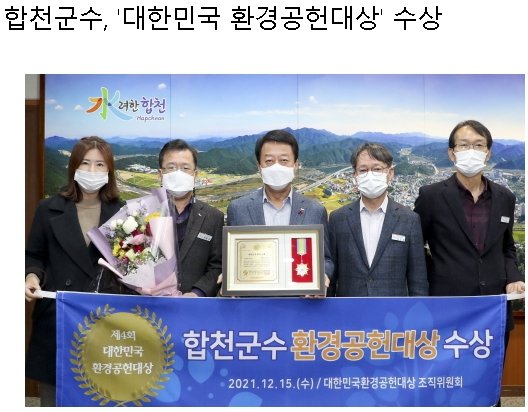 문준희 합천군수는 지난 15일 서울 매헌윤봉길의사 기념관에서 열린 제4회 대한민국 환경공헌대상 시상식에서 군정활동부문우수 환경공헌대상을 수상했다.
